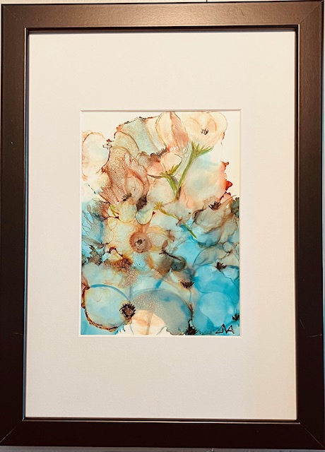 Billedet er lavet med flydende maling (ink)  hvorpå der er iblandet lidt vand