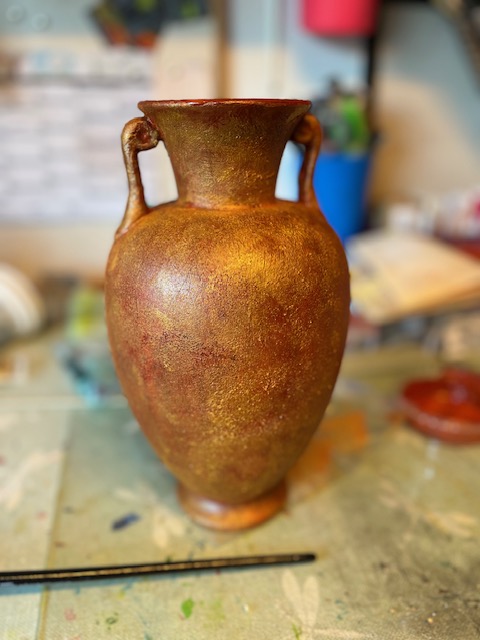 Malet med brun og guld akrylmaling,