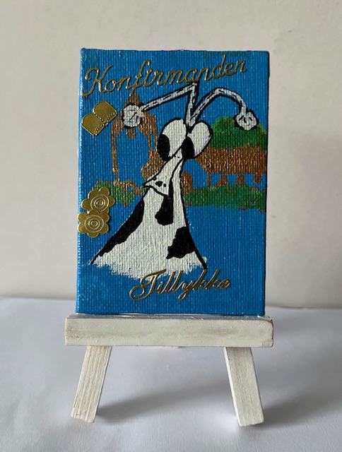 Unikt lille maleri på lærred. Staffeli medfølger.