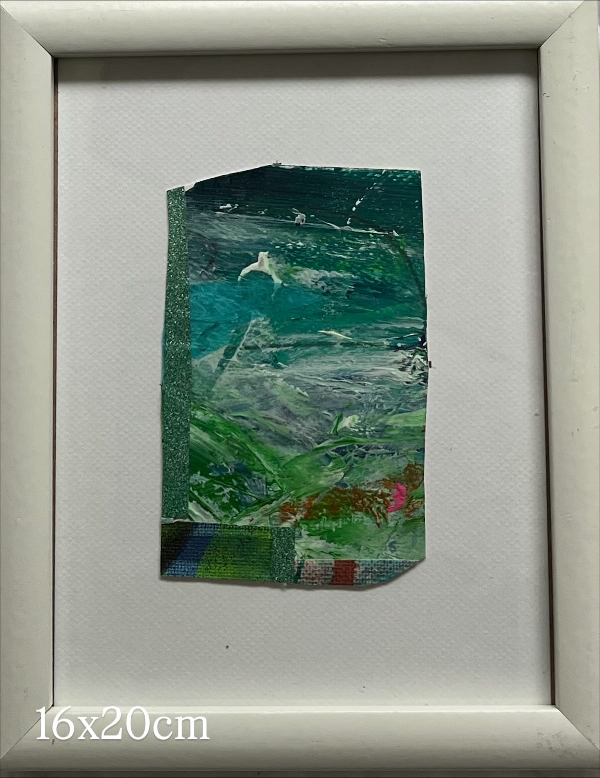 Mindre værk – igen lavet som collage med rester af lærred og papirstk.